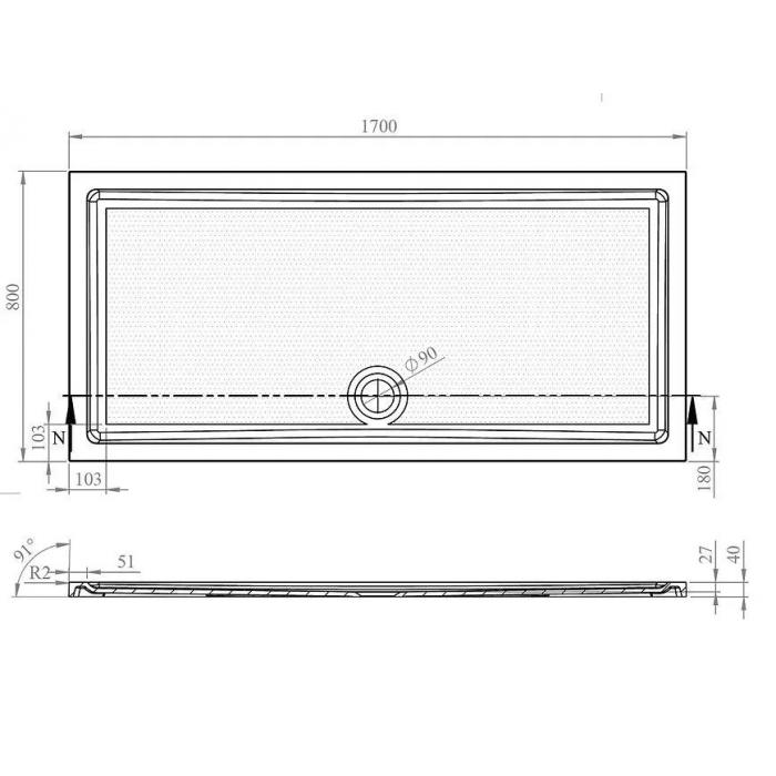 Brodzik prostokątny Tek 170x80x4