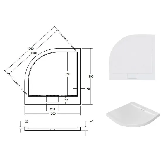 Brodzik Ultraslim półokrągły Axim 90x90x4.5+syfon