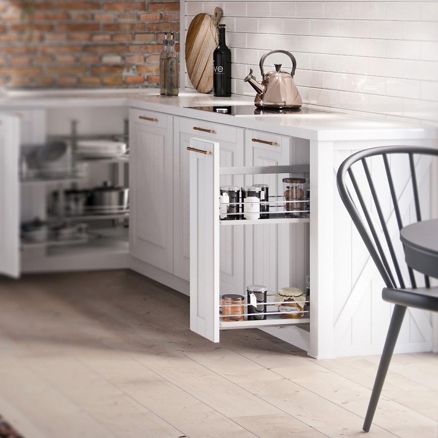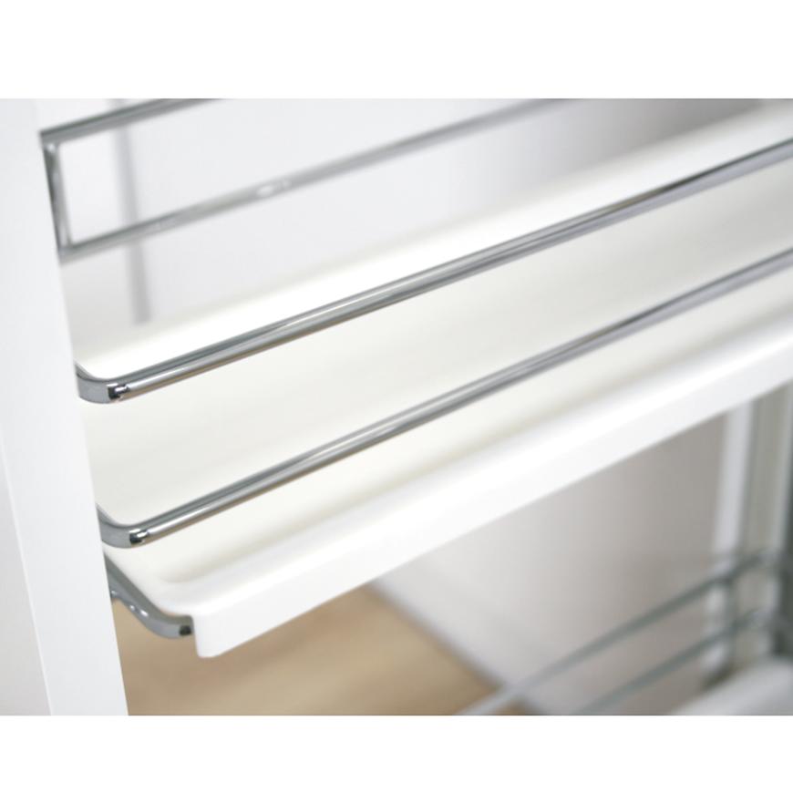 Kosze Cargo mini boczne do kuchni w eleganckim połączeniu chromu i bieli to funkcjonalne rozwiązanie, które doskonale sprawdzi się w każdej nowoczesnej kuchni. Dzięki kompaktowym wymiarom idealnie pasują do wąskich szafek bocznych, pozwalając maksymalnie wykorzystać przestrzeń i utrzymać porządek. Solidne wykonanie oraz estetyczne wykończenie w kolorze chrom/biały gwarantują trwałość oraz stylowy wygląd, który harmonijnie komponuje się z nowoczesnymi i klasycznymi wnętrzami. Kosze Cargo mini ułatwiają przechowywanie przypraw, butelek czy akcesoriów kuchennych, zapewniając wygodny dostęp do wszystkich niezbędnych przedmiotów. To praktyczne i eleganckie rozwiązanie, które łączy funkcjonalność z nowoczesnym designem, idealne dla osób ceniących komfort i porządek w kuchni.