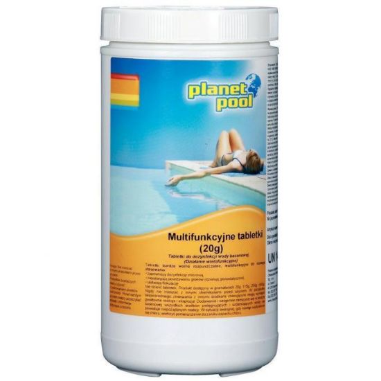 Środek w postaci tabletek do pielęgnacji wody basenowe, zawierającej środek flokujący, glonobójczy i środek dezynfekcyjny.