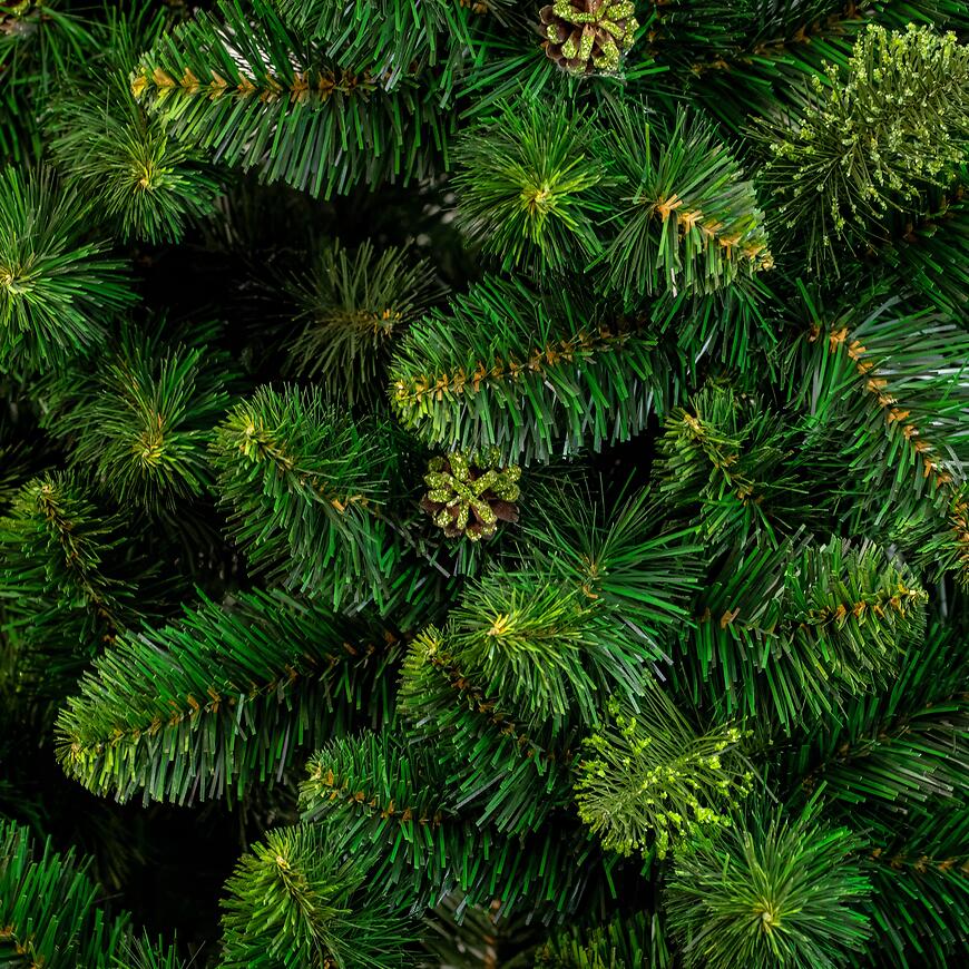Stwórz w swoim domu prawdziwie świąteczną atmosferę z Choinką sosną 220 cm. Drzewko o imponującej wysokości 220 cm wyróżnia się gęstymi, grubymi igłami, które wiernie naśladują naturalną sosnę. Dzięki 15 koronom, 59 gałęziom i 237 tipsom, choinka prezentuje się pełnie i naturalnie, zapewniając efektowną dekorację nawet w przestronnych wnętrzach.