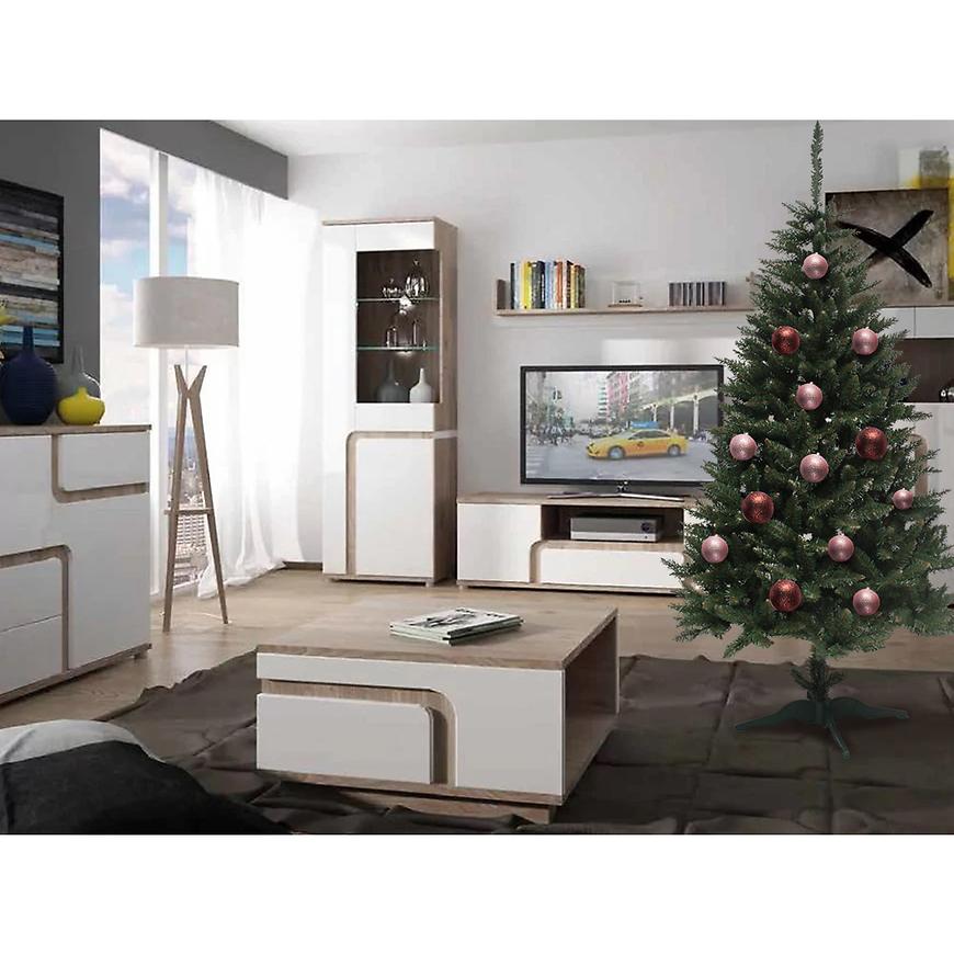 Drzewko można dowolnie modelować, dopasowując kształt gałęzi do własnych potrzeb. Choinka sztuczna 220 cm sprawdzi się w domu, biurze czy przestrzeni publicznej, zapewniając elegancką i naturalną dekorację świąteczną. Jasnozielone końcówki gałązek dodają lekkości i podkreślają kolorystykę ozdób.