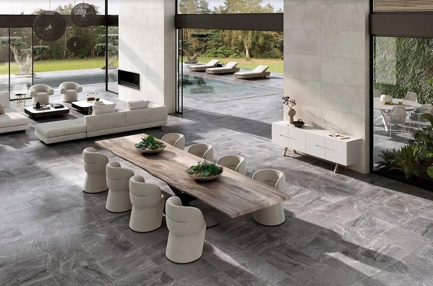 Szary odcień i marmurowe wzornictwo pozwalają na łatwe łączenie z różnymi materiałami wykończeniowymi, takimi jak gres, drewno czy kamień dekoracyjny, co daje możliwość tworzenia nowoczesnych i eleganckich aranżacji.