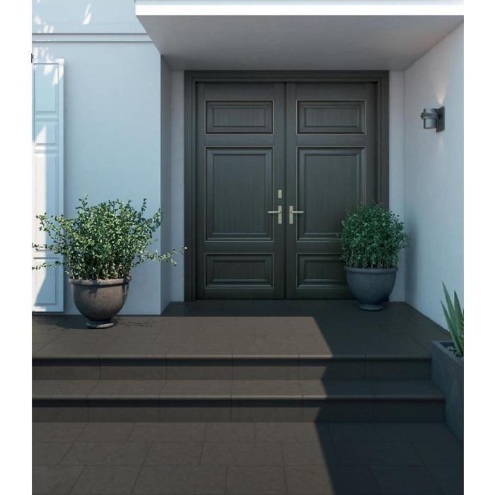 Cokół schodowy Zanq Orion Antracite Prawy 39×20 w eleganckim antracytowym kolorze, matowy i mrozoodporny. Idealny do wykończenia stopni i ścian, wewnątrz i na zewnątrz. Trwały i funkcjonalny element aranżacji wnętrz.