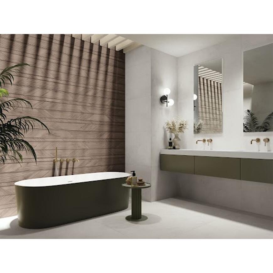 Dzięki rektyfikowanym krawędziom, płytka Sequoya Bush Cedar 60x120 umożliwia niemal bezfugowy montaż, co pozwala uzyskać spójną i harmonijną powierzchnię ściany. To rozwiązanie doskonale wpisuje się w nowoczesne aranżacje, gdzie liczy się elegancja i minimalizm wykończenia.