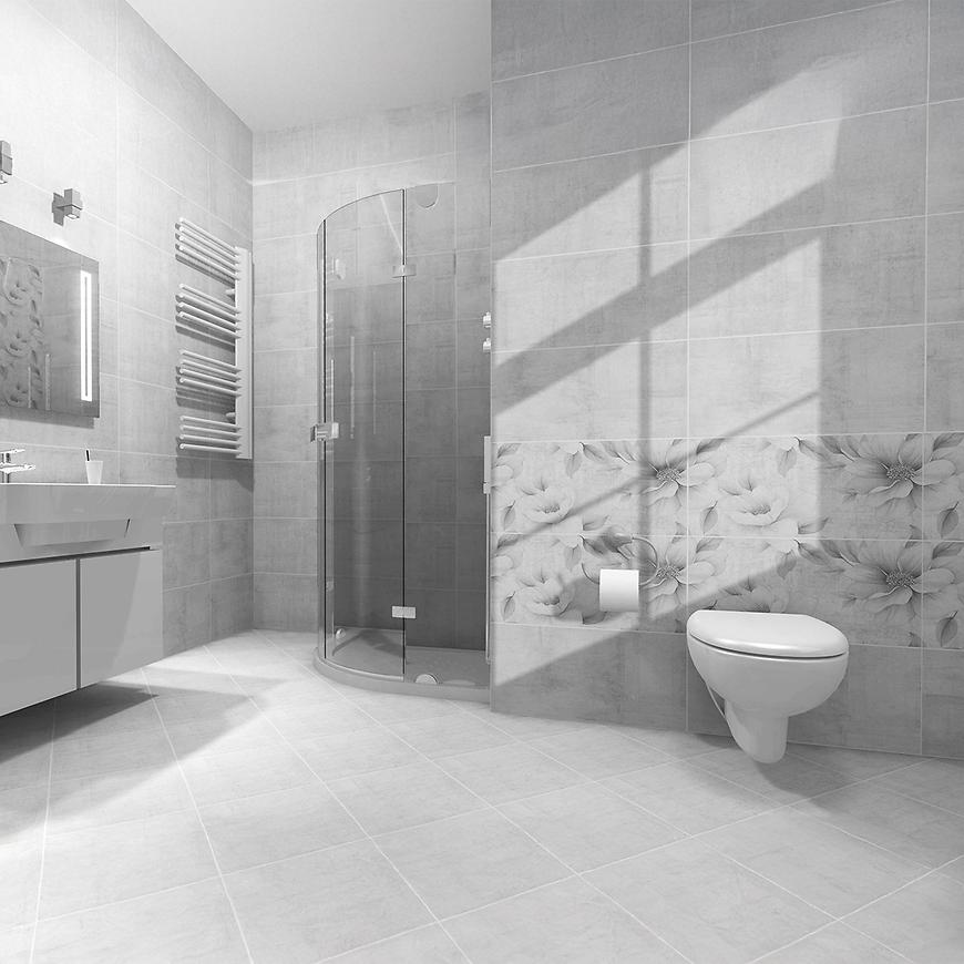 Dekor Rumba Grey Flower 30×60 cm to płytka ścienna z kolekcji RUMBA o wymiarach 60 × 30 cm i grubości około 0,85 cm. Ma matową powierzchnię, nierektyfikowane krawędzie oraz wzornictwo inspirowane betonem. Przeznaczona jest do stosowania wewnątrz pomieszczeń, nie jest mrozoodporna. Utrzymana w szarej kolorystyce, gatunek I. W opakowaniu znajduje się 10 sztuk, co daje około 1,8 m², a waga całego opakowania wynosi około 1,1 kg. Towar sprzedawany jest na sztuki, a nie w opakowaniach.