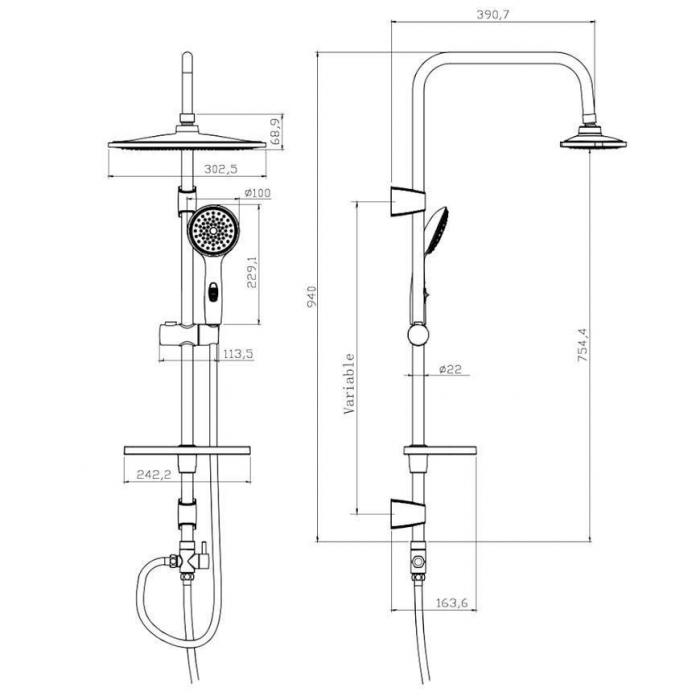 Kolumna Delta oferuje dwa rodzaje strumieni, co pozwala dostosować intensywność i sposób natrysku do własnych potrzeb. Szeroka deszczownica 300x150 mm gwarantuje równomierny i przyjemny strumień wody, idealny do relaksu po ciężkim dniu.