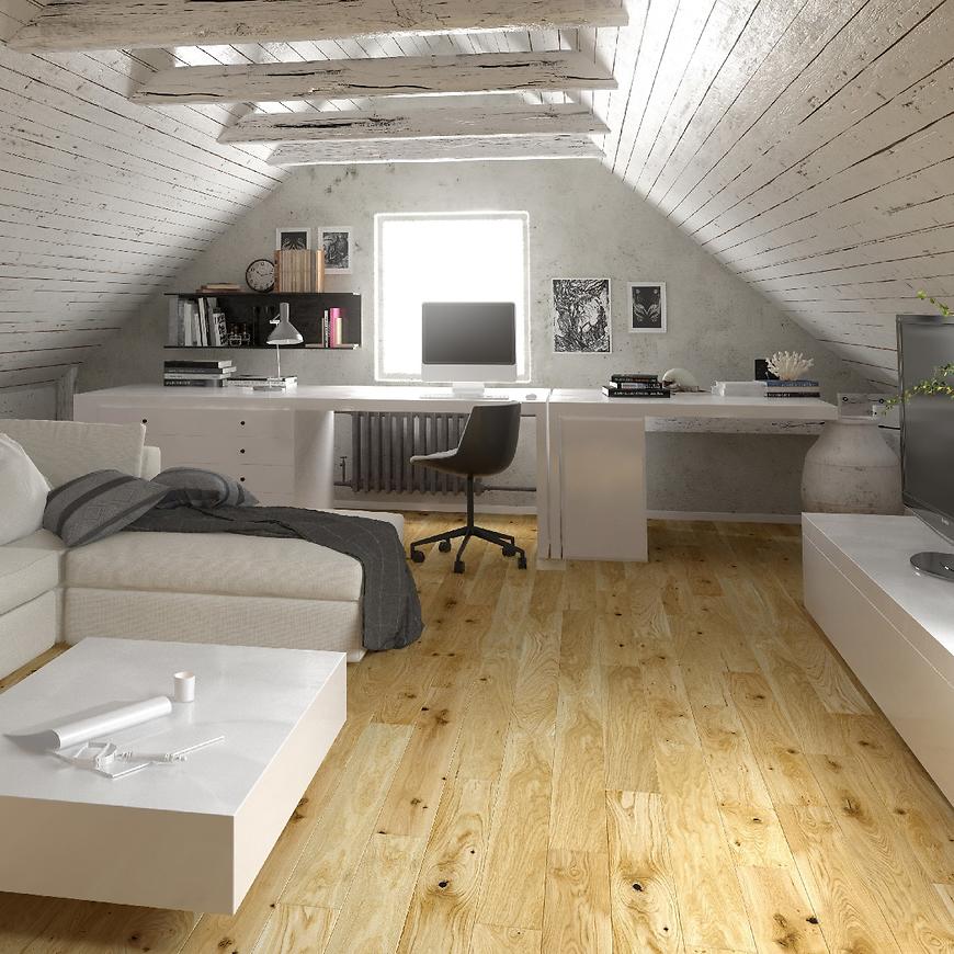 Trwała i odporna deska podłogowa Barlinek Dąb Various wykonana z drewna doskonale sprawdzi się w większości aranżacji. Dzięki swoim naturalnym właściwością nie przyciąga kurzu dlatego jest odpowiednia dla alergików. Idealnie tłumi hałas. Nada pomieszczeniu ponadczasowego i ciepłego wyglądu.