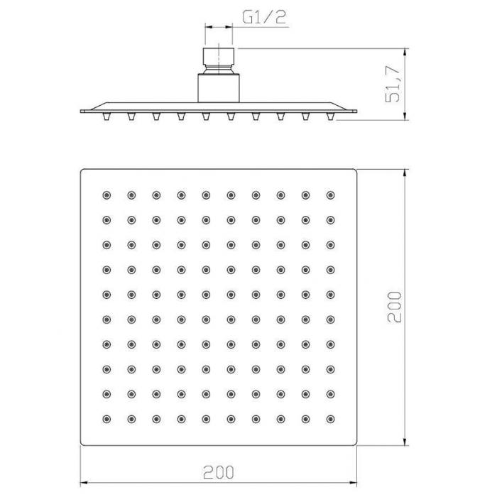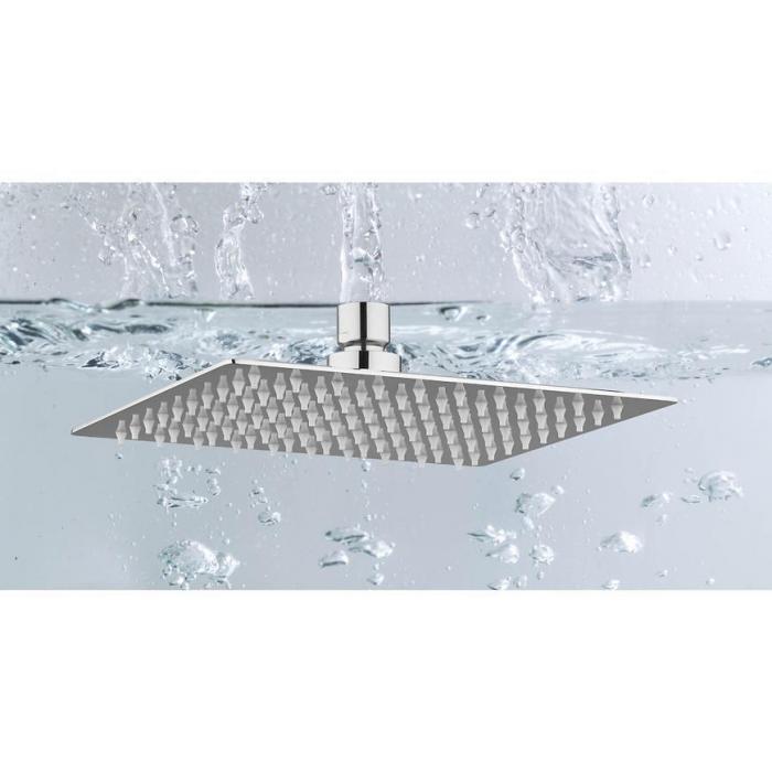 Kwadratowa głowica natrysku ze stali 0rdzewnej, przegub kulowy,przyłącze G ½, system szybkiego usuwania kamienia, bez ramienia natrysku.