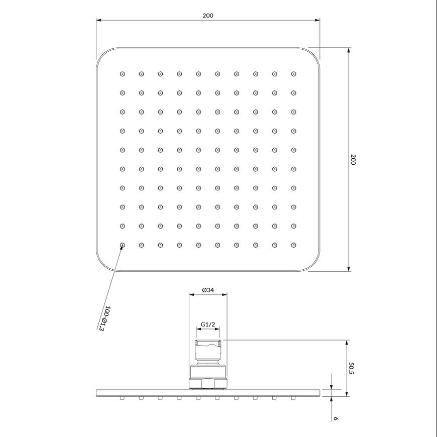 Deszczownica Slimline 20x20 cm czarna to elegancka i nowoczesna deszczownica, która zapewnia równomierny, relaksujący strumień wody, idealna do stylowych łazienek.