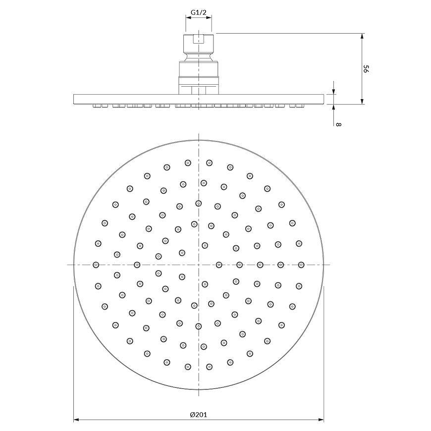 Nowoczesna, czarna deszczownica o średnicy 20 cm. Zapewnia równomierny, relaksujący strumień wody i stylowy akcent w każdej łazience urządzonej w eleganckim, minimalistycznym stylu.