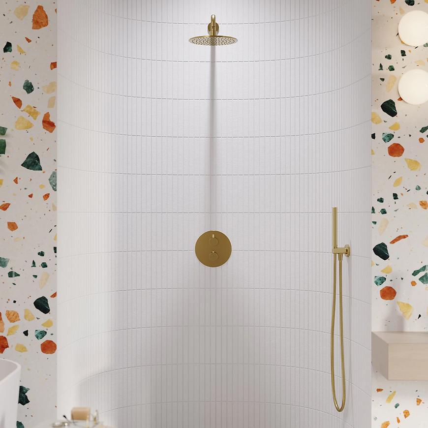 Deszczownica z ramieniem Slimline Ø25 cm w kolorze złotym szczotkowanym to elegancki i funkcjonalny dodatek do nowoczesnej łazienki. Zapewnia szeroki, równomierny strumień wody, łącząc komfort użytkowania z wyrafinowanym designem. Idealna do stylowych aranżacji.