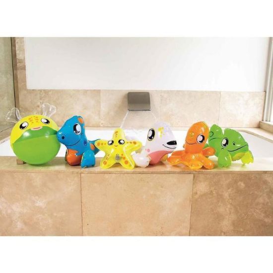 Nadmuchiwane zabawki wodne - zwierzątka, do zabawy w wannie przeznaczone dla dzieci powyżej 4 miesiąca życia.
