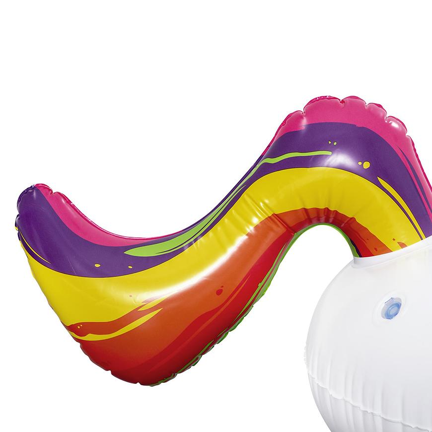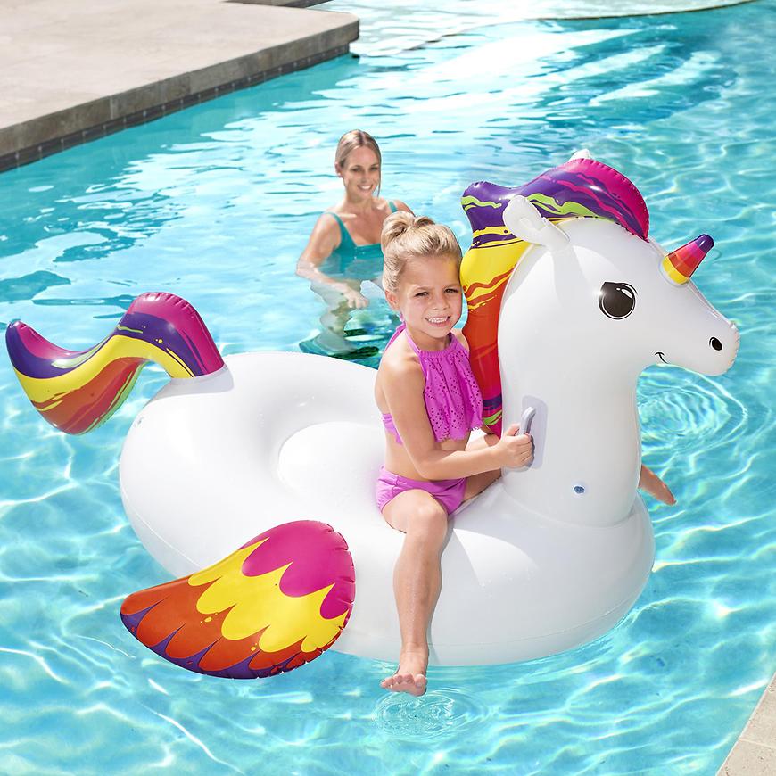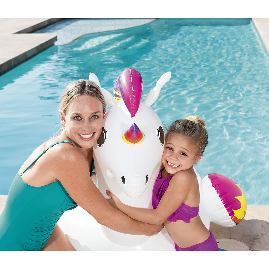 Fantasy Unicorn™ Ride-On wyróżnia się żywym, tęczowym wzorem kolorów i przytulną szyją, która dodaje mu uroku. Wytrzymałe uchwyty umożliwiają stabilne oparcie i łatwe wskoczenie, kiedy maluchy są gotowe na magiczną przejażdżkę po wodzie. Trwała konstrukcja, przetestowana pod względem ciśnienia, sprawia, że jest on idealnym towarzyszem na basenie, w jeziorze czy podczas rodzinnych wycieczek.