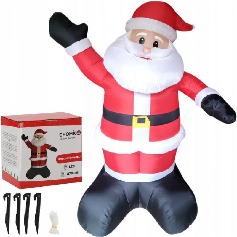Rozświetl świąteczny nastrój w ogrodzie lub przed domem dzięki imponującej dekoracji – dmuchanemu Mikołajowi LED o wysokości aż 270 cm. To wyjątkowa ozdoba, która nie tylko przyciąga wzrok dzięki swoim żywym, wielokolorowym barwom, ale również tworzy przytulną atmosferę za sprawą ciepłego światła LED o barwie 3000K. Wykonany z trwałego tworzywa sztucznego i odporny na warunki atmosferyczne (klasa szczelności IP44), Mikołaj sprawdzi się doskonale jako element świątecznego wystroju na zewnątrz budynku. Energooszczędne, zasilane sieciowo oświetlenie LED gwarantuje długą i bezpieczną eksploatację przez cały sezon zimowy. Ten efektowny, dmuchany Mikołaj to idealny sposób, by podkreślić magię Bożego Narodzenia i przyciągnąć uwagę przechodniów, sąsiadów oraz gości.