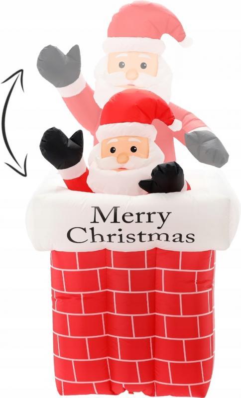 Wprowadź do swojego ogrodu lub przed dom świąteczny klimat z wyjątkową dekoracją – dmuchanym Mikołajem w kominie o wysokości aż 240 cm. Ta imponująca ozdoba przyciąga uwagę nie tylko rozmiarem, ale i efektownym, wielokolorowym wykończeniem, które doskonale wpisuje się w bożonarodzeniową atmosferę. Zintegrowane oświetlenie LED o ciepłej barwie 3000K sprawia, że Mikołaj jest doskonale widoczny zarówno w dzień, jak i po zmroku, tworząc magiczny nastrój w każdych warunkach pogodowych.