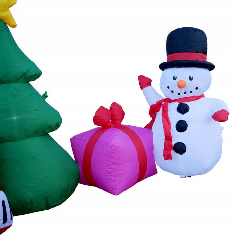 Dmuchany Mikołaj z choinką o imponującej wysokości 270 cm to wyjątkowa dekoracja świąteczna, która z pewnością przyciągnie uwagę każdego przechodnia. Wykonany z trwałego tworzywa sztucznego, idealnie sprawdzi się zarówno w ogrodzie, jak i przed domem, tworząc niepowtarzalny, bajkowy klimat. Dzięki wbudowanemu oświetleniu LED o ciepłej barwie światła (3000K) oraz klasie szczelności IP44, dekoracja jest odporna na zmienne warunki atmosferyczne, a jednocześnie energooszczędna i bezpieczna w użytkowaniu. Zasilanie sieciowe pozwala na stabilną pracę, a całość rozświetla się za pomocą jednego punktu świetlnego, dodając magii świątecznym aranżacjom. Wielokolorowy design Mikołaja i choinki sprawia, że dekoracja doskonale wpisuje się w świąteczny klimat, stając się nieodłącznym elementem bożonarodzeniowego wystroju przestrzeni zewnętrznych.