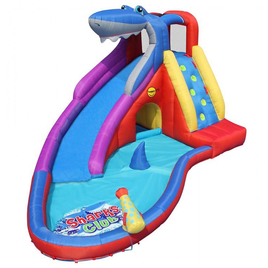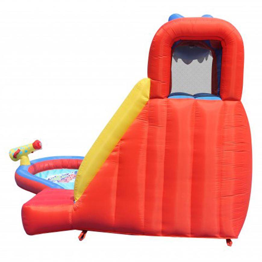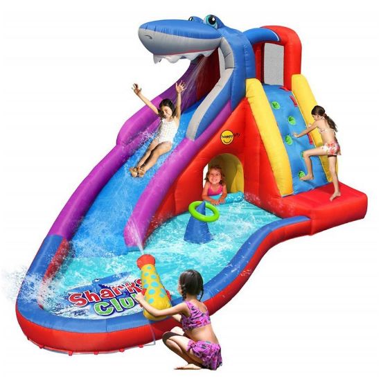 Dmuchany plac zabaw Rekin 450x320x240 cm to fantastyczna atrakcja dla dzieci, która łączy w sobie skakanie, wspinanie i wodne szaleństwo. Dzięki dmuchanej trampolinie ze zjeżdżalnią, armatce wodnej i ściance wspinaczkowej, maluchy mogą cieszyć się aktywną i pełną emocji zabawą. Trwała konstrukcja z PVC i laminowanego nylonu gwarantuje bezpieczeństwo i odporność na intensywną eksploatację.