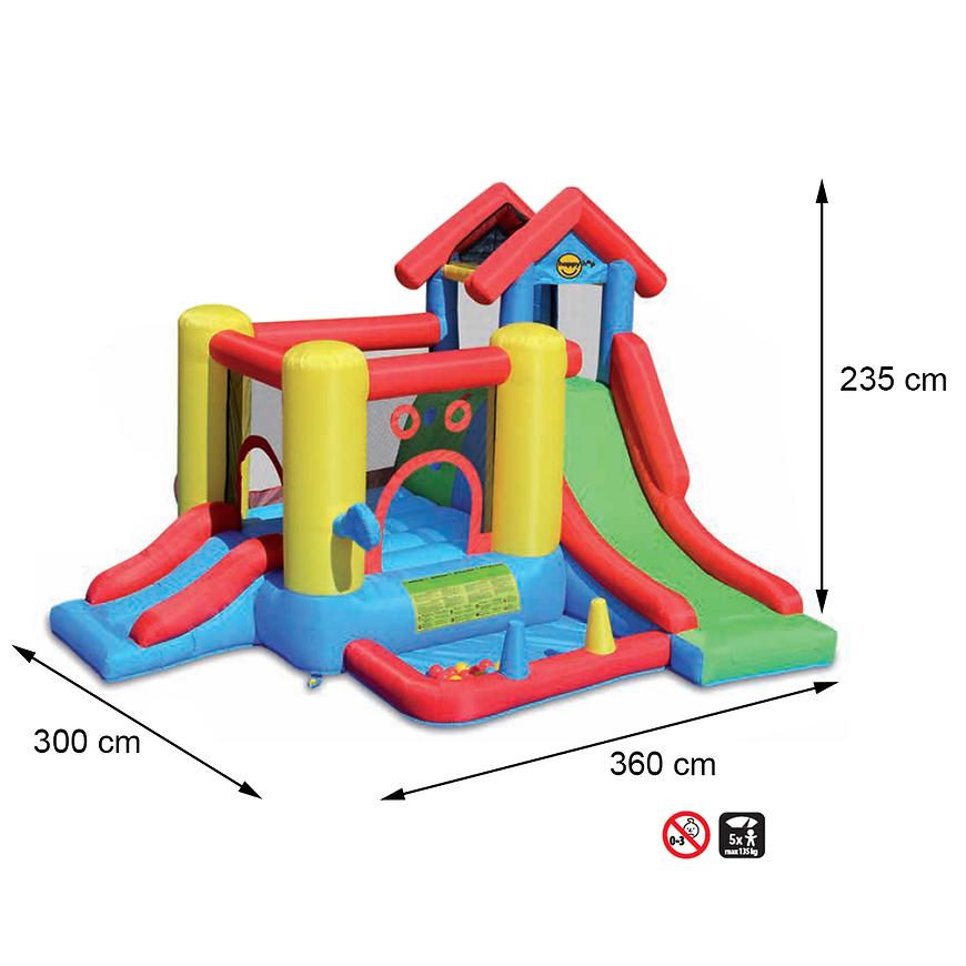 - Duże wymiary 365x265x215 cm – mnóstwo miejsca do zabawy dla kilku dzieci jednocześnie.