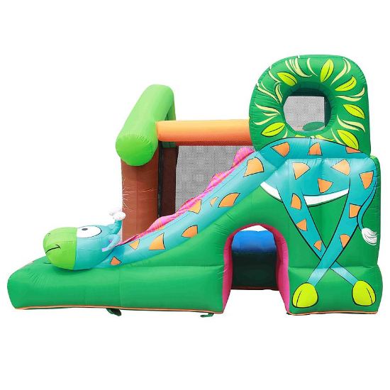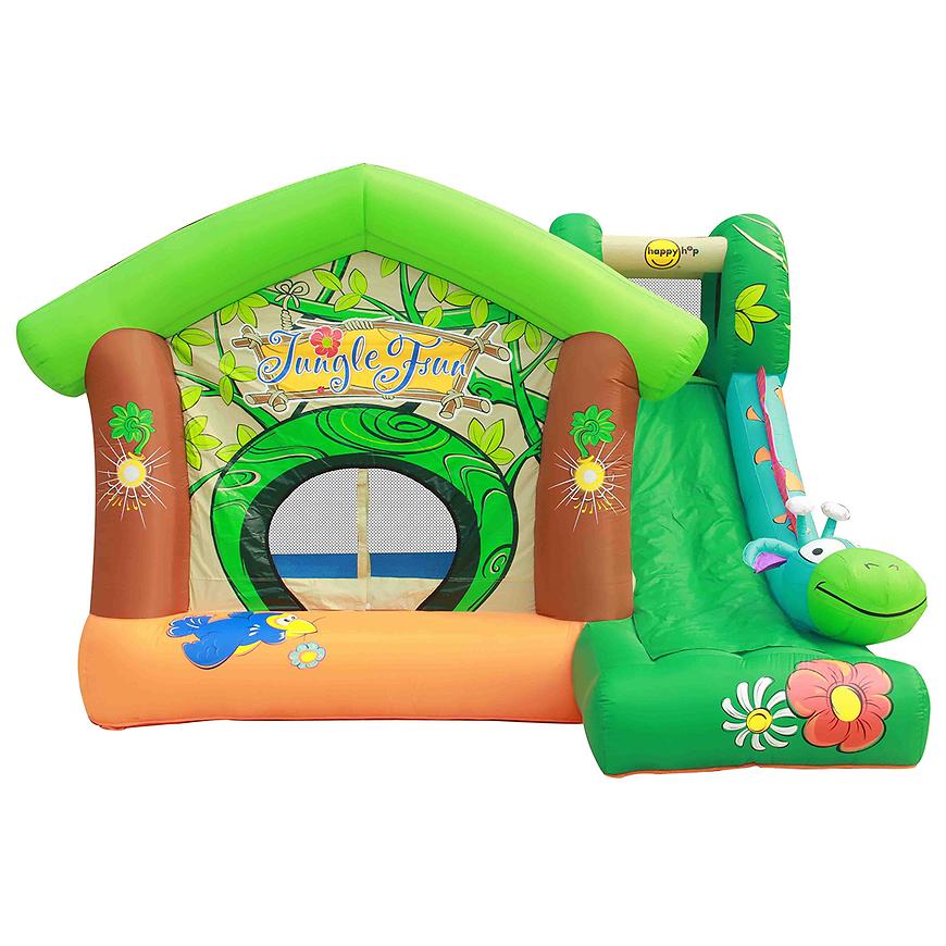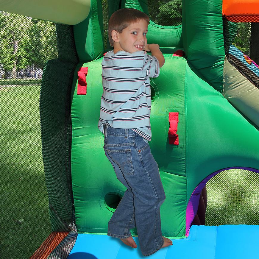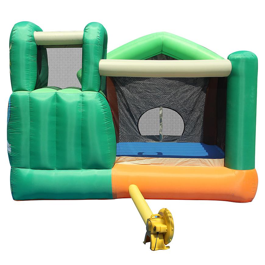 - Wiele atrakcji w jednym – zjeżdżalnia, trampolina, ścianka i obręcz do rzutów!