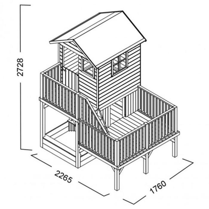 Podłoga domku powinna być odizolowana od podłoża np. poprzez ustawienie go na płytkach lub kostkach betonowych. Dzięki temu będzie lepsza wentylacja domku. Maksymalna waga użytkownika to 50kg, a maksymalne obciążenie domku wynosi 150kg.