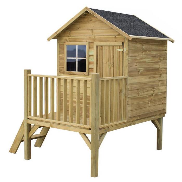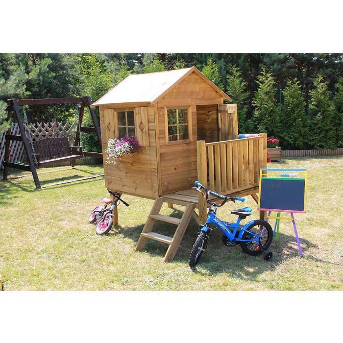 Domek ogrodowy dla dzieci to świetne miejsce do zabawy. Domek został wykonany z drewna sosnowego i zaimpregnowany Wolmanit CX-8WB, dzięki czemu jest odporny na warunki atmosferyczne. Domek powinien być zakotwiony w podłożu. Maksymalna waga użytkownika to 50kg, a maksymalne obciążenie domku wynosi 150kg.