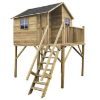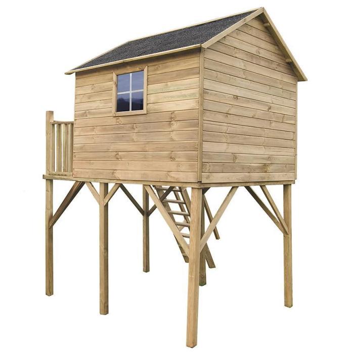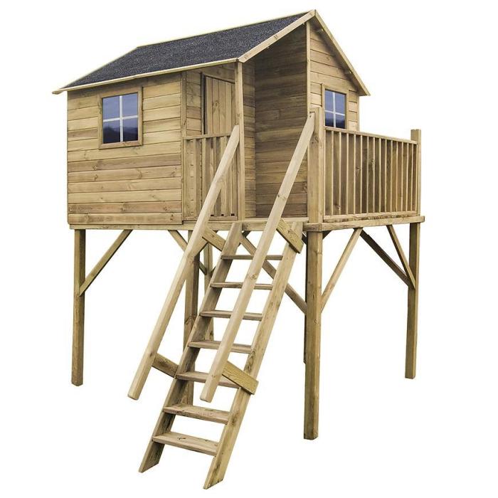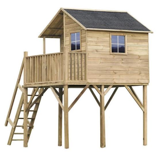Domek dla dzieci Jerzyk MAX 315x221x315 cm zaprojektowany jest z myślą o zapewnieniu dzieciom niezapomnianych przygód w bezpiecznym otoczeniu. Dzięki wysokiej platformie (150 cm nad ziemią) domek zyskuje wyjątkowy charakter, a jego drewniana konstrukcja, impregnowana preparatem Wolmanit CX-8WB, zapewnia ochronę przed wilgocią, owadami i grzybami.