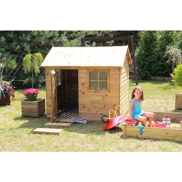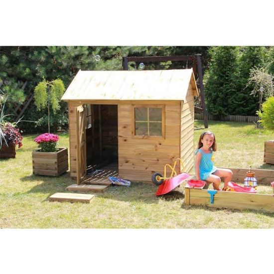 Domek ogrodowy dla dzieci to świetne miejsce do zabawy. Domek Witek został wykonany z drewna sosnowego i zaimpregnowany Wolmanit CX-8WB, dzięki czemu jest odporny na warunki atmosferyczne. Nogi domku powinny być odizolowane od podłoża np. poprzez ustawienie go na płytkach lub kostkach betonowych. Dzięki temu będzie lepsza wentylacja domku. Maksymalna waga użytkownika to 50kg, a maksymalne obciążenie domku wynosi 150kg.