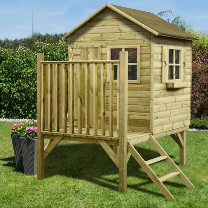 Materiał budulcowy domku to nieprzetworzone i niezabezpieczone suszone drewno sosnowe - należy więc zabezpieczyć domek malując go bejcą lub lakierem do drewna, aby nie uległ zniszczeniu. Zaleca się także pokrycie gontem. Dodatkowo według uznania wraz z dzieckiem można przyozdobić domek malując po zabezpieczeniu w dowolnym kolorze.