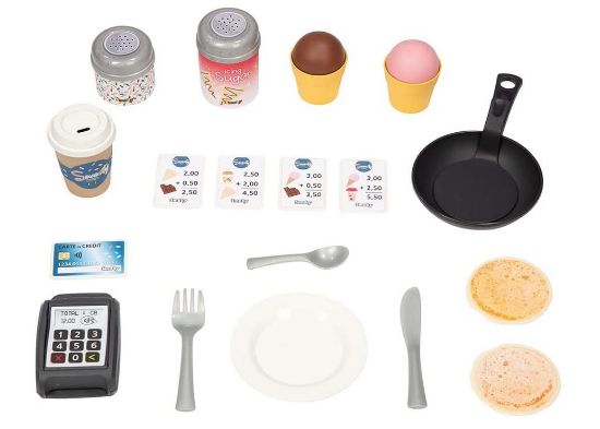 Domek został wykonany z trwałych, odpornych na warunki atmosferyczne materiałów z ochroną UV, co zapewnia długotrwałą intensywność kolorów i możliwość bezpiecznego użytkowania przez wiele sezonów. Stabilna konstrukcja sprawia, że domek świetnie sprawdza się zarówno w ogrodzie, jak i na tarasie czy placu zabaw. Dzięki bogatemu zestawowi aż 18 realistycznych akcesoriów – w tym patelni, naleśników, lodów, sztućców, talerzyków, czytnika kart kredytowych i paragonów – dzieci mają wszystko, czego potrzebują, by wcielić się w rolę prawdziwego sprzedawcy słodkości.