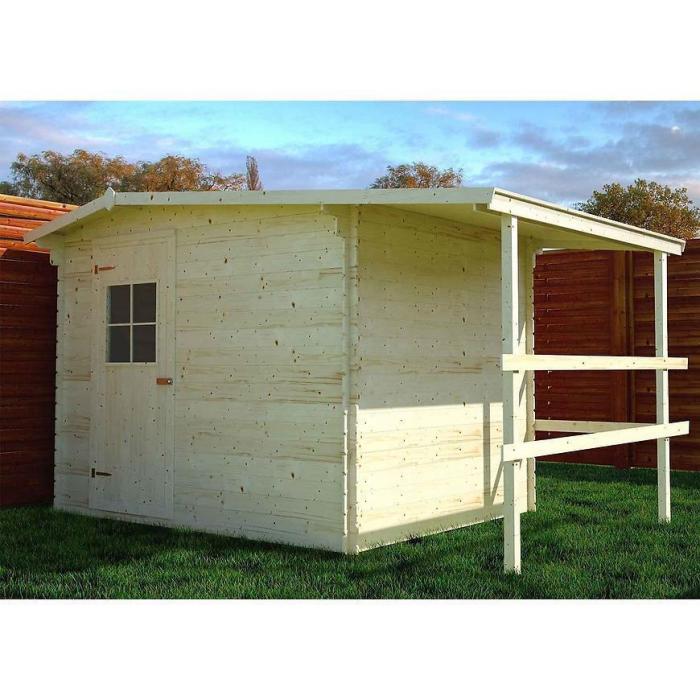 Drzwi jednoskrzydłowe z przeszklonym wypełnieniem z pleksi ułatwiają dostęp do wnętrza, zapewniając jednocześnie odpowiednią ilość naturalnego światła. Domek Aster jest dostępny wraz z funkcjonalną drewutnią, co dodatkowo zwiększa jego użyteczność.