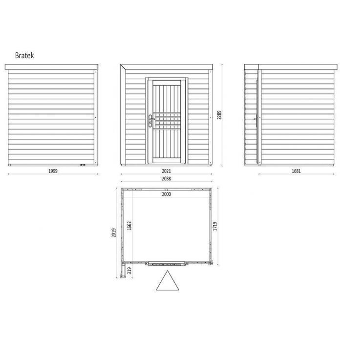 - Wymiary zewnętrzne bez dachu: 201,9x203,8x171,9 cm