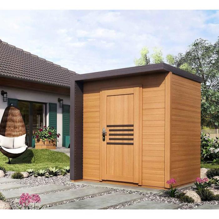 Drewniany domek ogrodowy Bratek to praktyczne rozwiązanie dla osób poszukujących miejsca na składzik czy schowek do ogrodu. Z wyraźnym naciskiem na nowoczesny design i prostą formę, domek ten wyróżnia się elegancją i funkcjonalnością.
