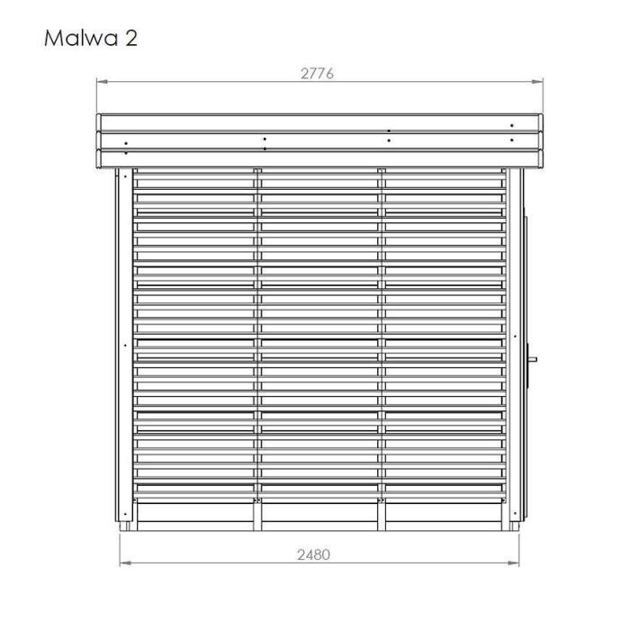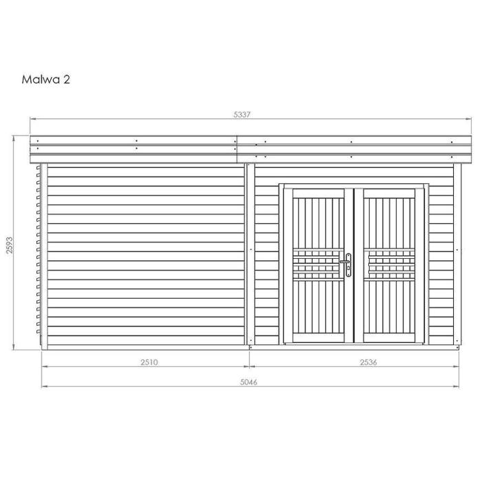 Domek na narzędzia Malwa został wykonany z surowego drewna świerkowego oraz posiada jednospadowy dach obitym papą asfaltową.Dodatkowo domek posiada drzwi dwuskrzydłowe.