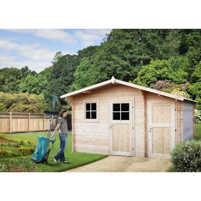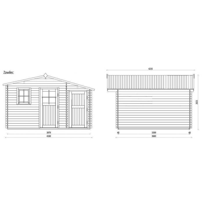 Domek ogrodowy Zawilec został wykonany z surowego drewna świerkowego oraz posiada dwuspadowy dach do przechowywania narzędzi ogrodniczych.