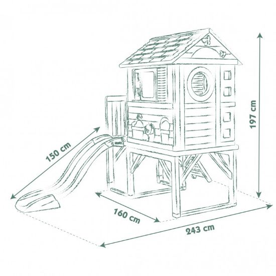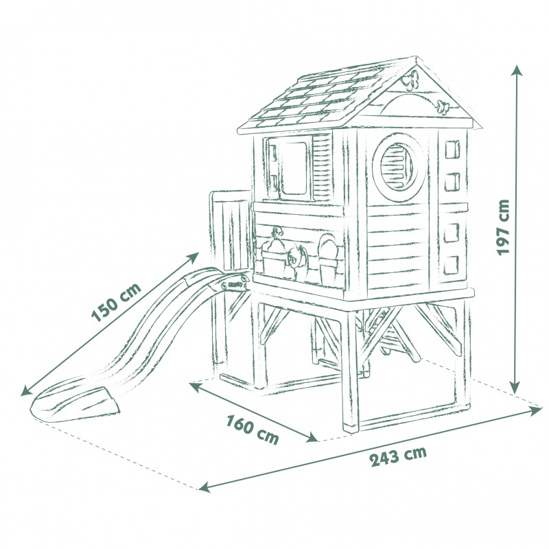 Domek o wymiarach 243 x 160 x 197 cm jest przeznaczony dla dzieci od 2. roku życia i idealnie sprawdzi się w ogrodzie, zapewniając codziennie nowe przygody i aktywność fizyczną na świeżym powietrzu. To inwestycja w kreatywną zabawę, rozwój i radość najmłodszych przez wiele sezonów.