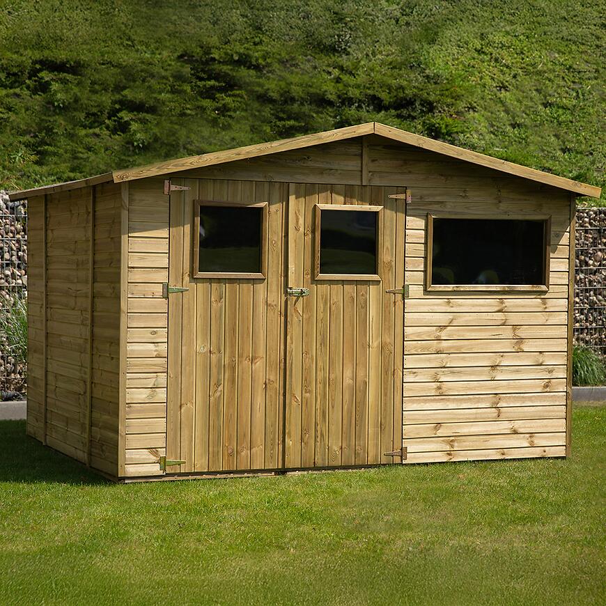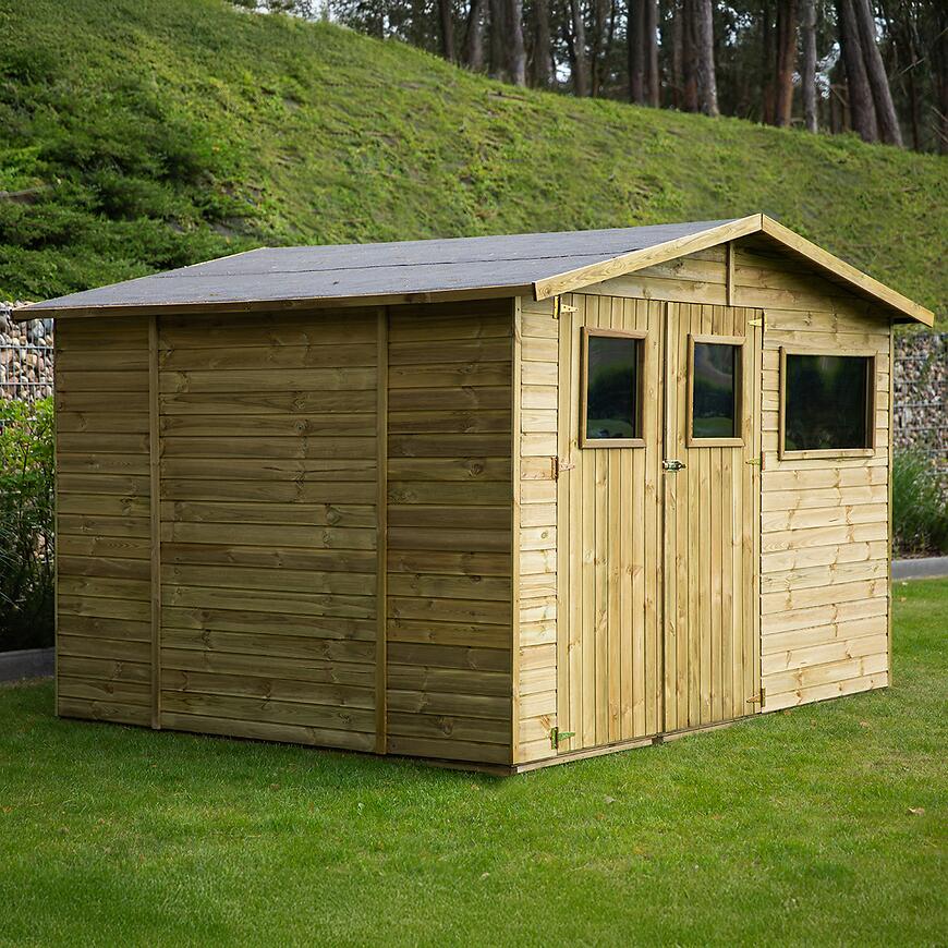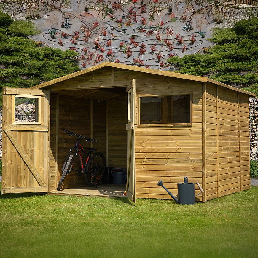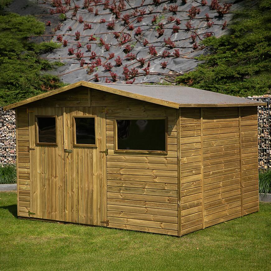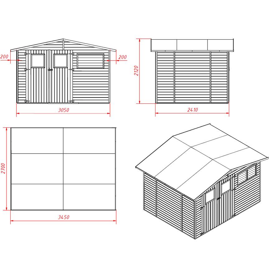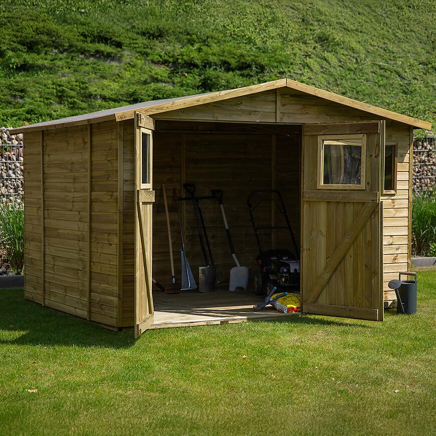 Domek ogrodowy Como Maxi 305x241x212 cm to przestronny i elegancki domek drewniany, który doskonale sprawdzi się do przechowywania narzędzi, mebli ogrodowych czy sprzętu rekreacyjnego.