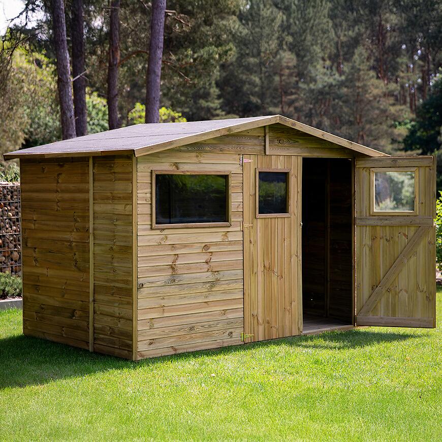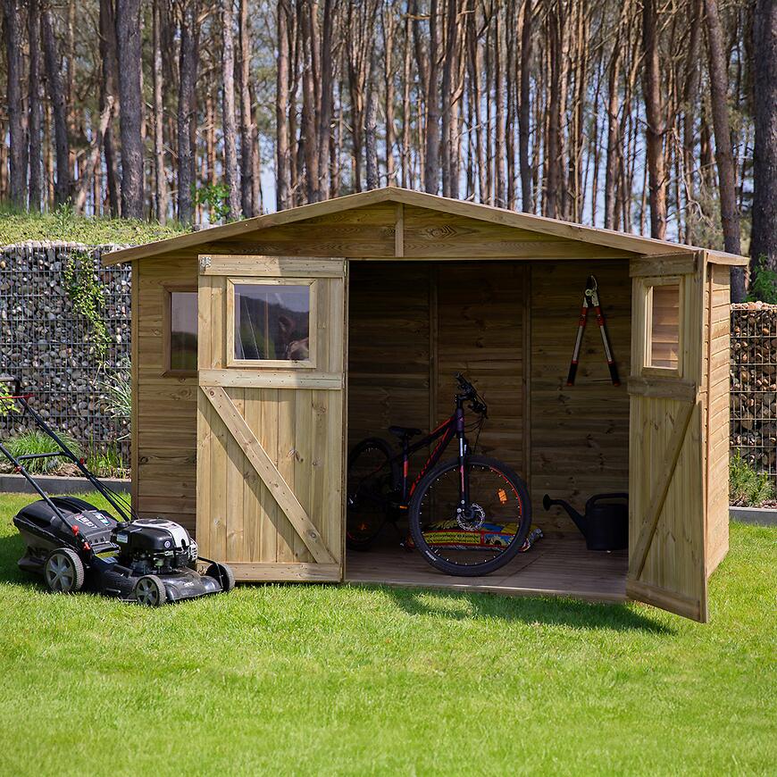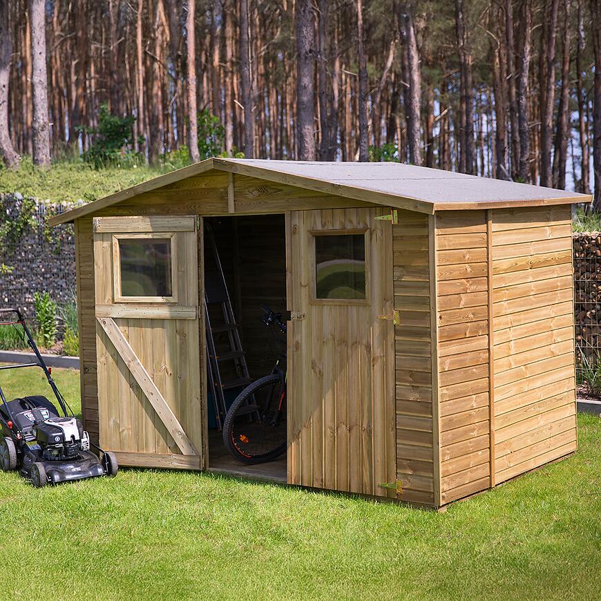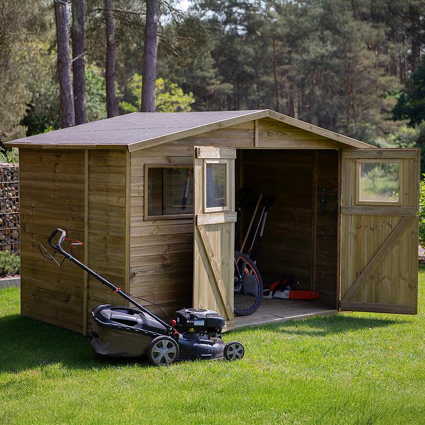 Domek ogrodowy Como Mini 305x182x212 cm to kompaktowy, ale niezwykle funkcjonalny domek drewniany, idealny do przechowywania narzędzi, sprzętu ogrodowego i akcesoriów sezonowych.