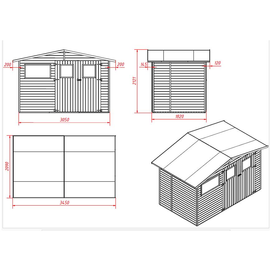 • Wymiary: 305 x 182 x 212 cm – zapewniają 5,31 m² powierzchni użytkowej.