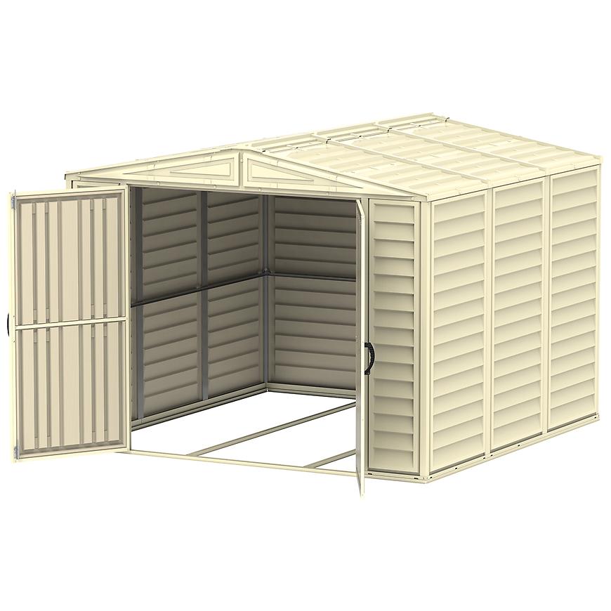 Wykonany z wytrzymałego na każdą pogodę winylu w neutralnym kolorze kości słoniowej, domek Dura Mate nie wymaga malowania ani konserwacji. Jego trwała konstrukcja nie rdzewieje, nie gnije, nie pleśnieje ani nie blaknie, co sprawia, że będzie służył przez wiele lat.