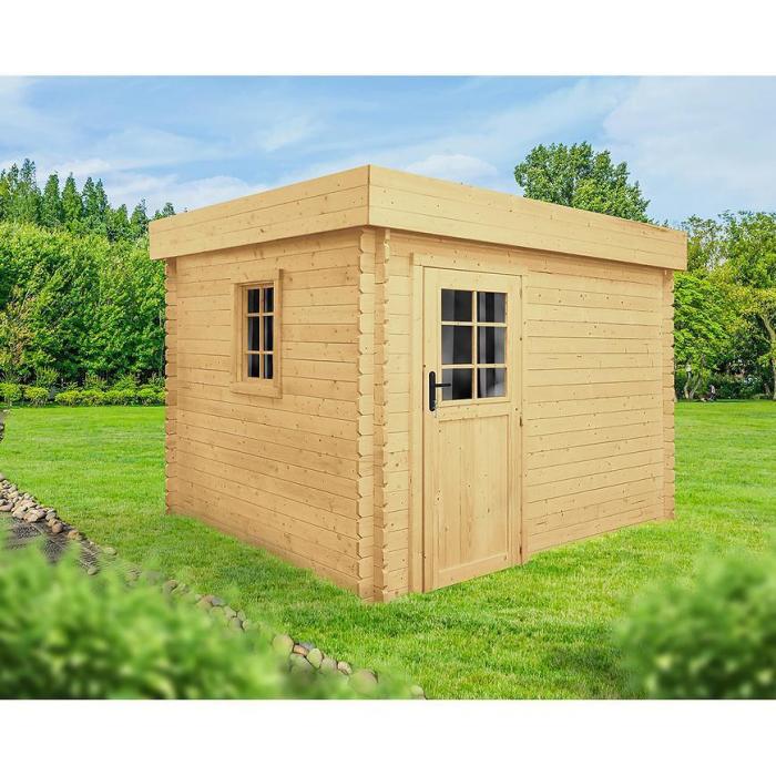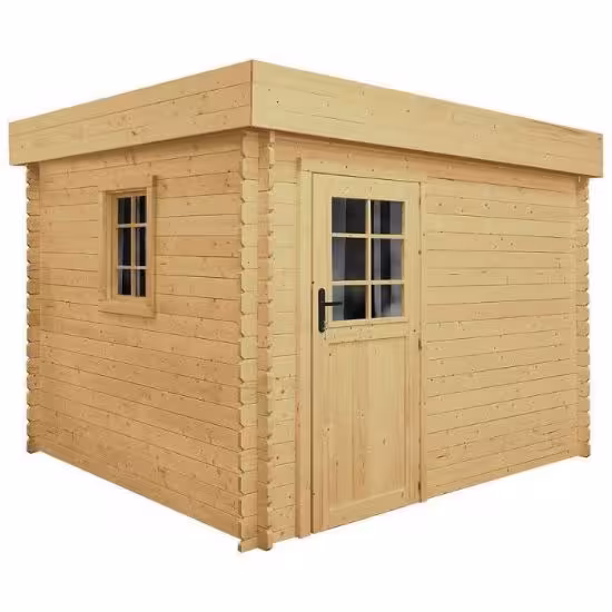 Jego jednospadowy dach, pokryty papą asfaltową, stanowi solidną ochronę przed opadami atmosferycznymi, zapewniając suchą i bezpieczną przestrzeń wewnątrz. Drzwi jednoskrzydłowe, wyposażone w przeszklone wypełnienie z pleksy, oraz okno o wymiarach 55x72 cm zapewniają dostęp do wnętrza oraz naturalne oświetlenie.