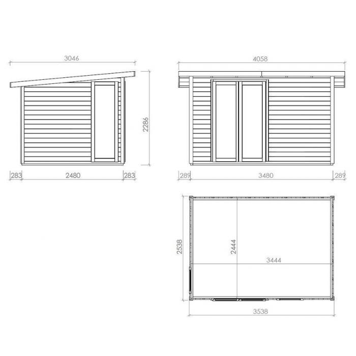 - Wymiary zewnętrzne bez dachu: 348x248 cm