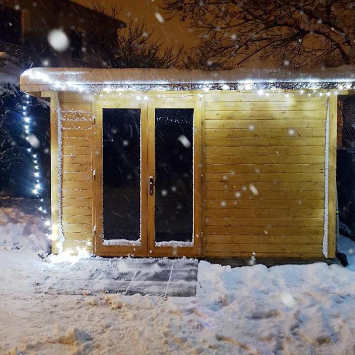 - Wymiary zewnętrzne z dachem: 405,8x304,6 cm