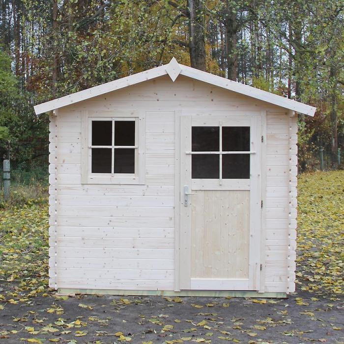 Domek ogrodowy Margaretka został wykonany z surowego drewna świerkowego oraz posiada dwuspadowy dach obitym papą asfaltową. Dodatkowo domek posiada okno z szprosami i drzwi jednoskrzydłowe przeszklone.