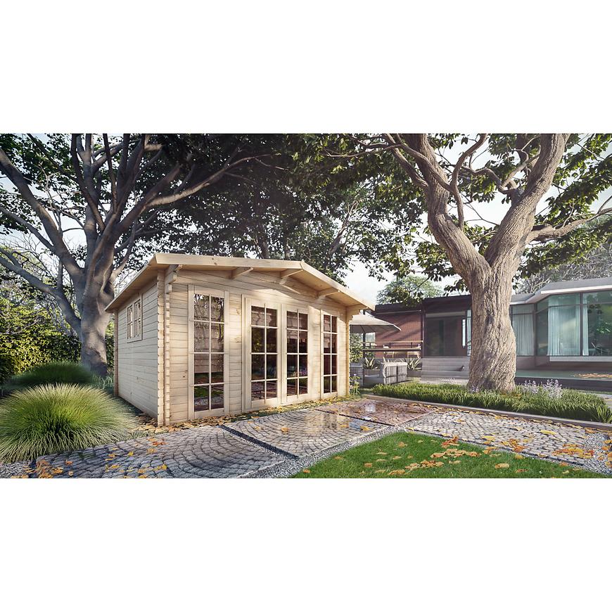 Konstrukcja domku ma wymiary 416 × 416 cm i wysokość 262,5 cm, oferując wewnętrzną powierzchnię 15,84 m², co sprawia, że doskonale sprawdzi się zarówno do przechowywania narzędzi ogrodowych, sprzętu rekreacyjnego, jak i jako przestrzeń do tworzenia warsztatu lub mini studio ogrodowego. Ściany o grubości 40 mm gwarantują stabilność i solidność konstrukcji przez wiele lat użytkowania.