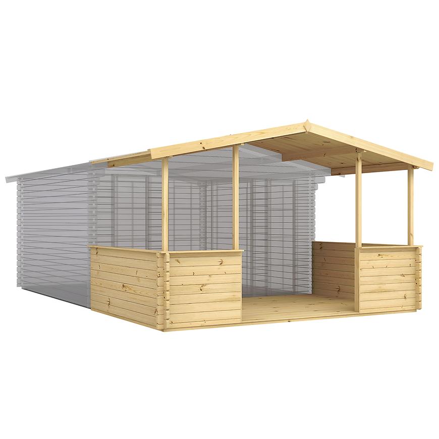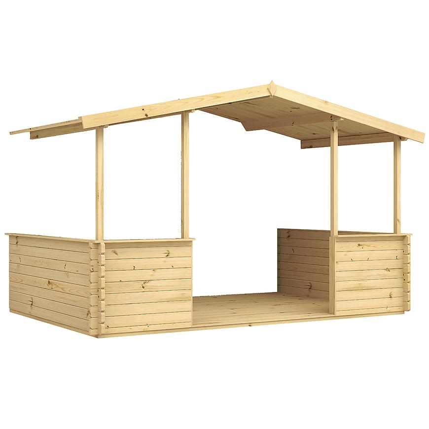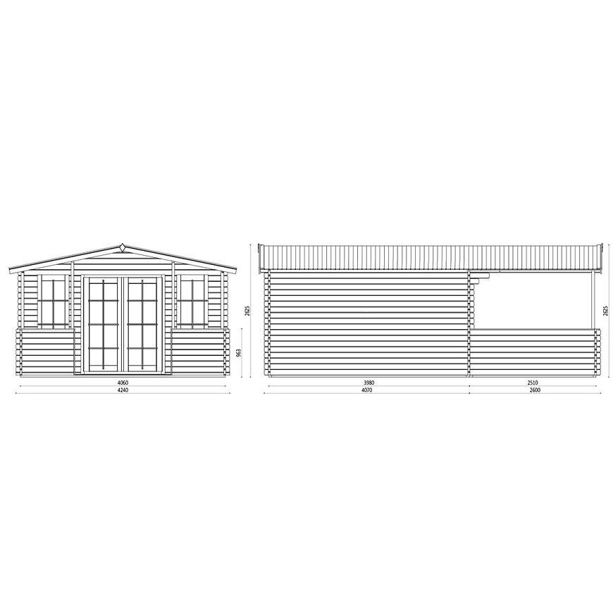 Domek ogrodowy Rannik z tarasem 416x667 to przestronny, solidnie wykonany domek ogrodowy z drewna świerkowego, który łączy klasyczny design z funkcjonalnością i możliwością aranżacji przestrzeni na wiele sposobów. Jego naturalne wykończenie ścian sprawia, że harmonijnie wpisuje się w każdy ogród, nadając mu elegancki i przytulny charakter.