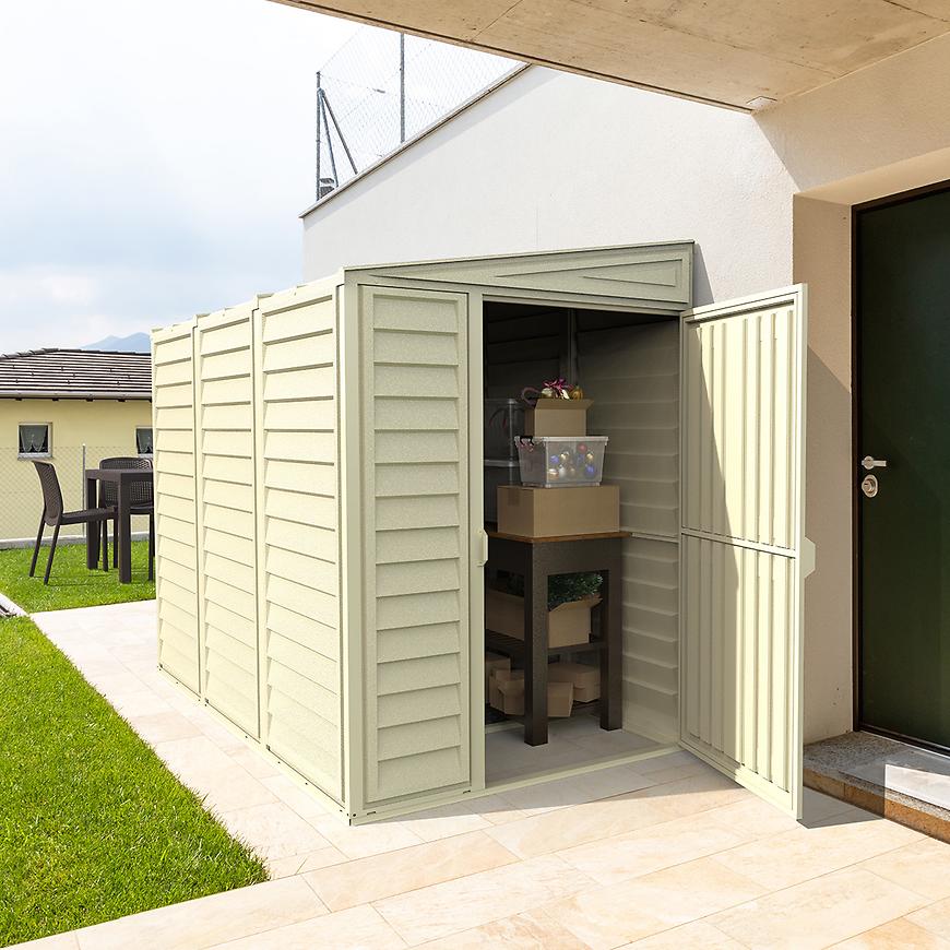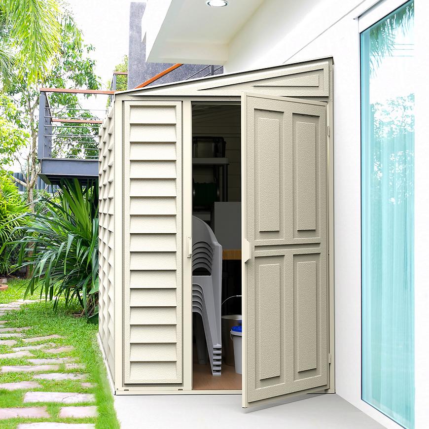Domek ogrodowy SideMate to doskonałe rozwiązanie dla tych, którzy poszukują praktycznego i funkcjonalnego miejsca do przechowywania w ogrodzie. Zaprojektowany z myślą o umieszczeniu na ścianie budynku, SideMate oferuje dużą przestrzeń do przechowywania narzędzi ogrodowych i sprzętu, jednocześnie oszczędzając cenną powierzchnię na podwórku.