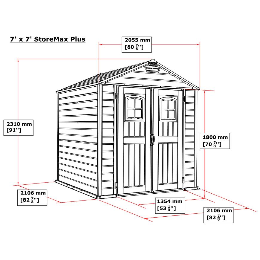 Domek ogrodowy Store Max to doskonałe rozwiązanie dla osób poszukujących przestronnego i solidnego miejsca do przechowywania w ogrodzie. Jego szerokość 206 cm, głębokość 209 cm i wysokość 231 cm zapewniają komfortową przestrzeń o powierzchni wewnętrznej 3,8 m², idealną do przechowywania narzędzi ogrodowych, mebli ogrodowych czy sprzętu rekreacyjnego.