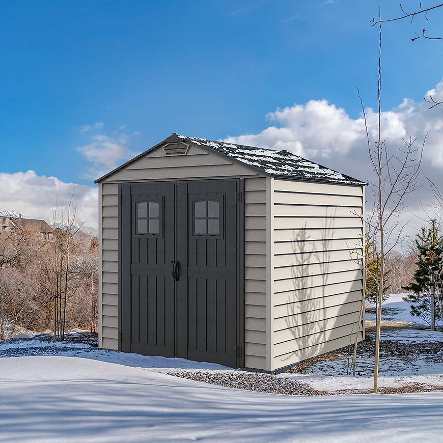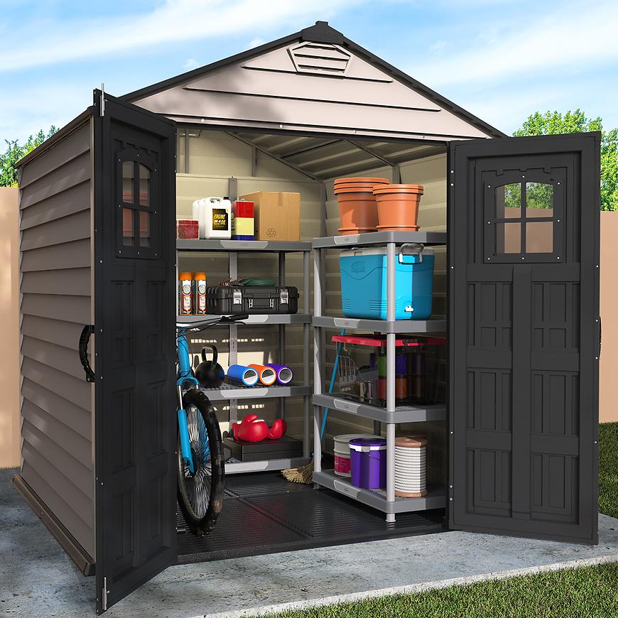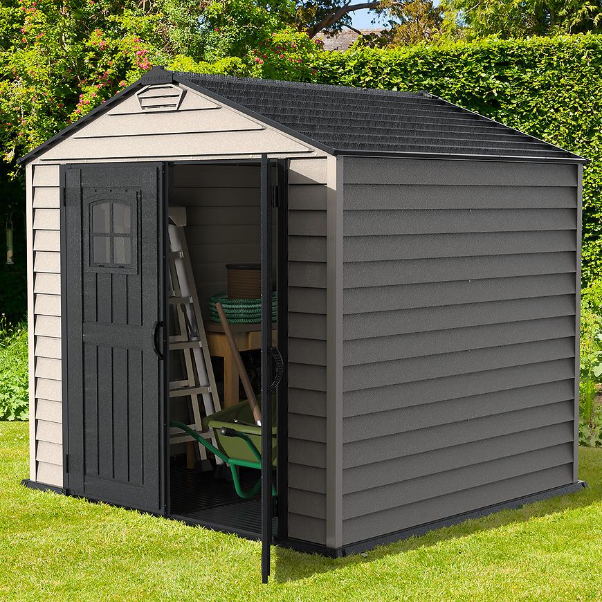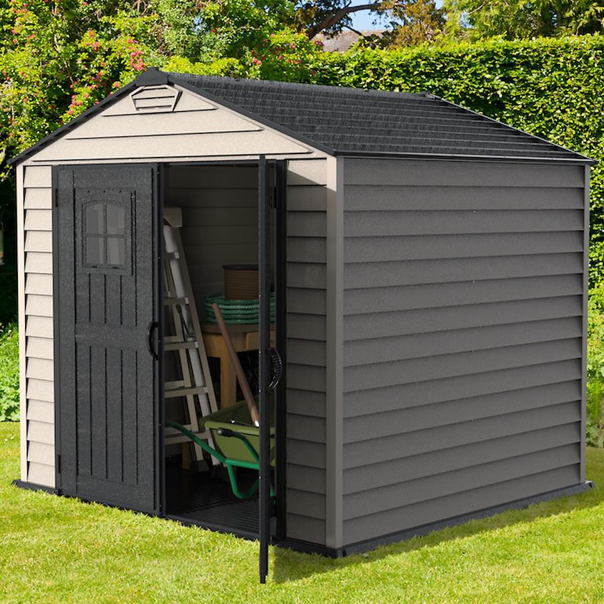 Wykonany z trwałego winylu o grubości 3 mm, domek Store Max jest odporny na warunki atmosferyczne oraz łatwy w utrzymaniu. Metalowe wzmocnienie konstrukcji zapewnia stabilność i wytrzymałość, co czyni ten domek niezawodnym rozwiązaniem na lata.
