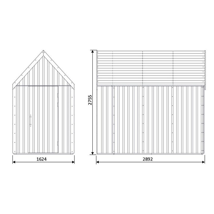 Wariant V1 to wersja całkowicie zamknięta – bez okien i przeszkleń, co zapewnia pełną prywatność oraz większe możliwości przechowywania lub adaptacji wnętrza. Jednoskrzydłowe drzwi bez przeszklenia wyposażone są w stalowy uchwyt typu sztanga z rolką oraz zamek na klucz.